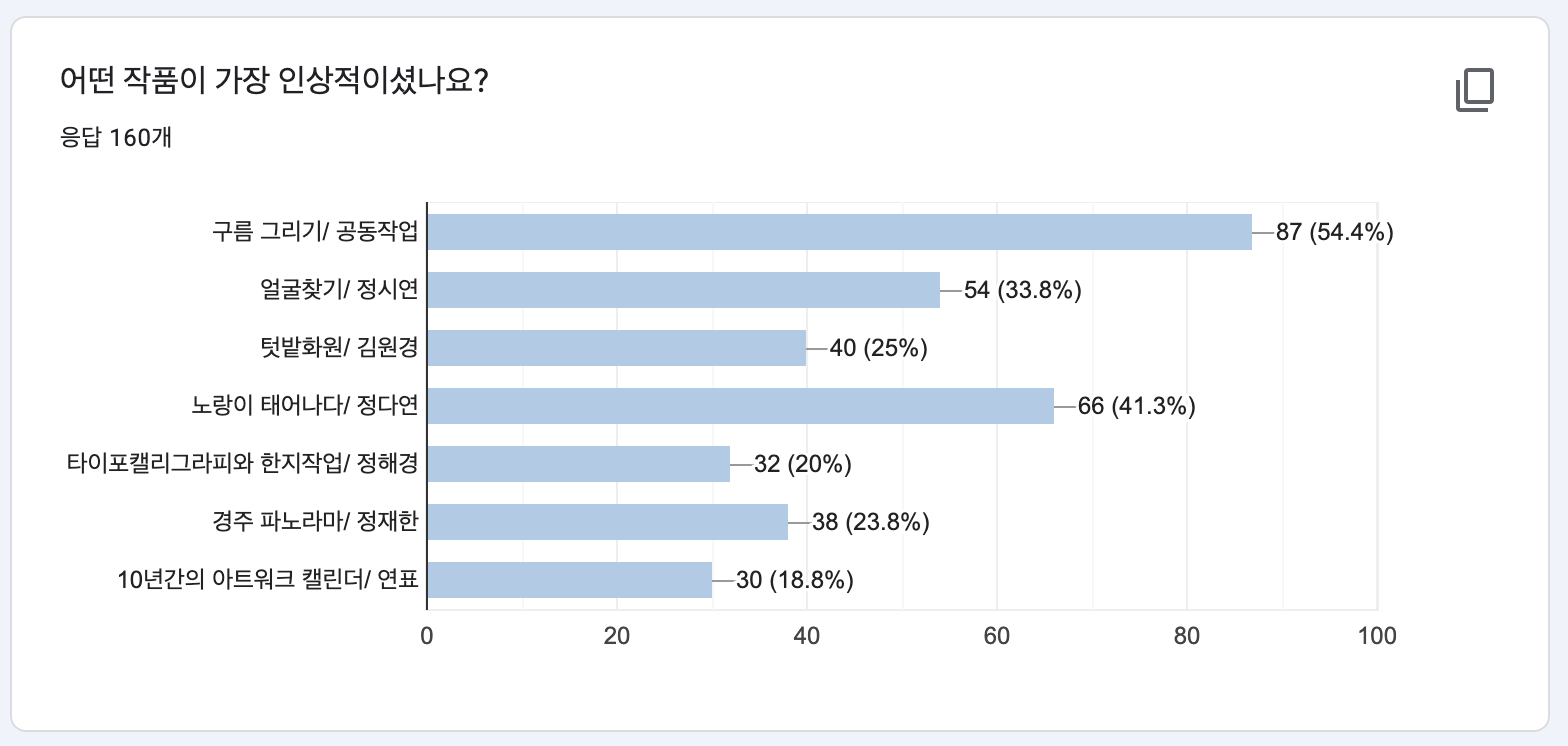 작품들이 다 예술적이고 새로웠다.특히 정다연선생님 작품들이 제일 인상깊었다.
