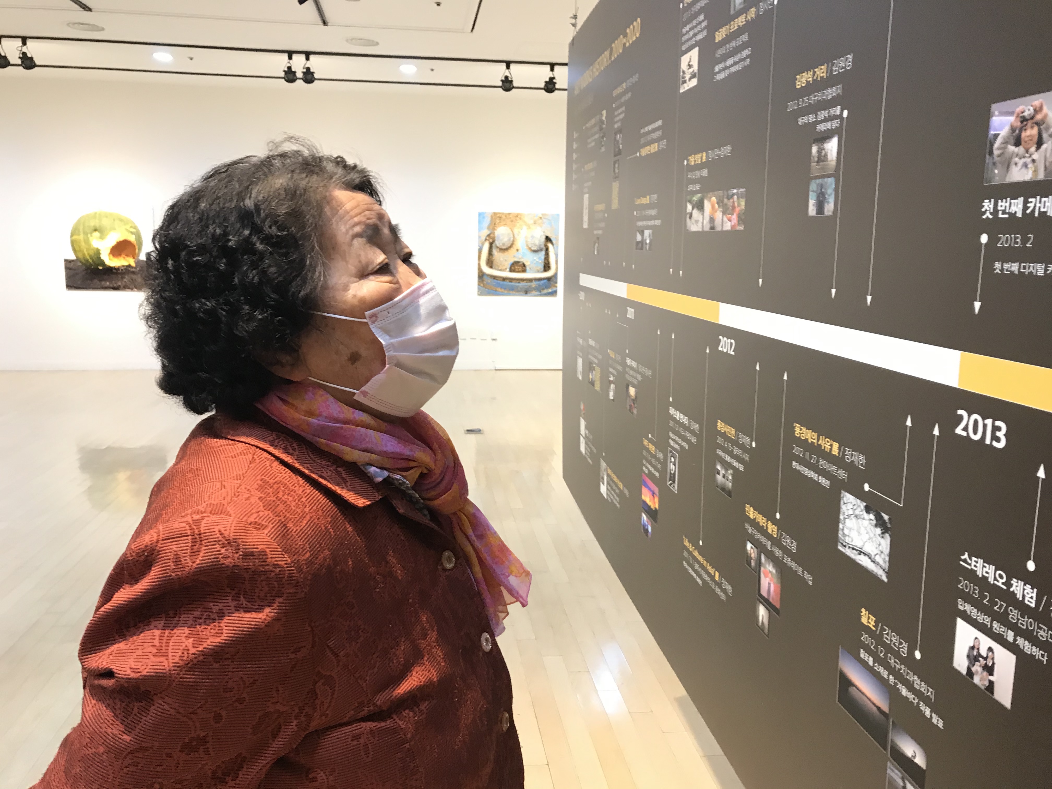 10시 정식 오픈을 10여분 앞두고 이송희 할머니께서 가장 먼저 전시장을 방문하셨습니다.