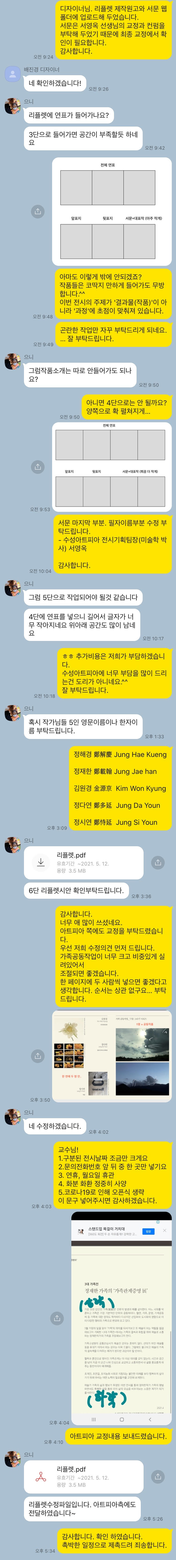 당초 엽서로 제작하려고 했던 계획을 바꾸어서 관객들께 좀 더 구체적인 정보를 드릴 수 있도록 '리플렛'제작을 요청.