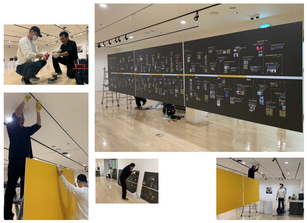 전시 오픈 전: 전시기획과 진행과정/ 작품제작과 설치/ 오프닝 준비...