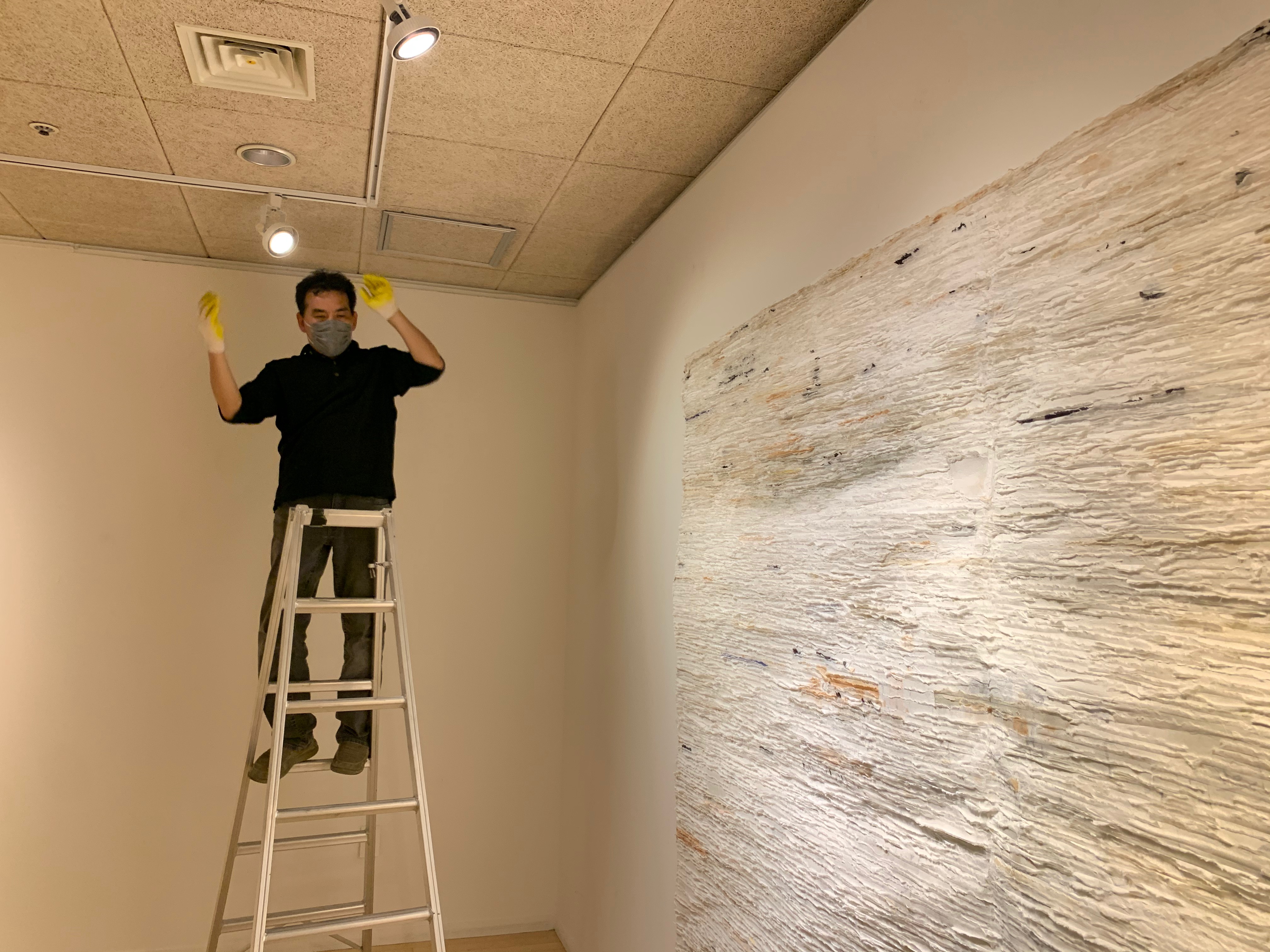 1200*2000 크기로 3등분된 판넬을 천정에 고정시키는 작업.